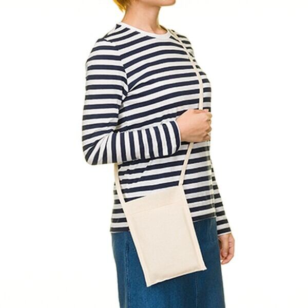 そんなとき、スマホや貴重品など、必要最低限の荷物を入れておくのに便利なのが厚手コットンミニサコッシュです。